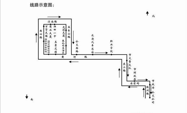 101線路自2011年3月23日起,將原線路調整為單向循環,起止站為市公交公司,不再進公交西站。西城部分路段調整后走向:由市公交公司發車(東城線路不變),沿黃河路直行經玉景花園、油田運輸公司、油田物資公司、百貨大樓、供銷商場、商業大商、油田一中、光彩大廈、勝大中心超市、協和醫院、公交西站,經黃河路返回公交公司。以上站點按順時方向靠路右側站點停車上下乘客,其他路段與原線路、站點相同,票價不變。歡迎廣大乘客屆時乘車。