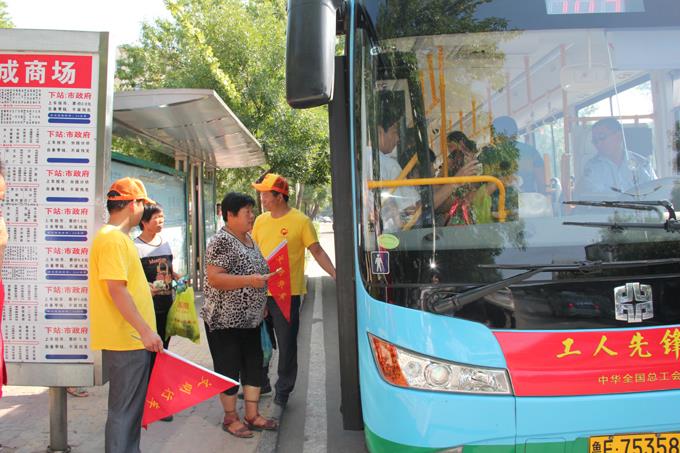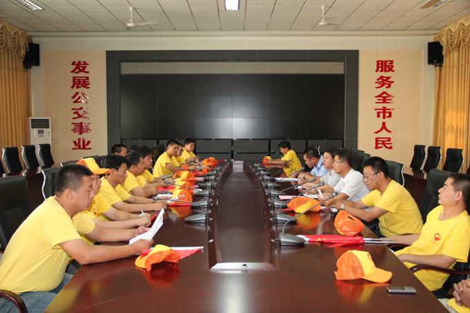 2012年8月10日下午,市公交公司召開了文明引導員專題會議。為更好地發揮廣大市民在創建文明城市中的積極作用,促進大家有序乘車,文明禮讓,維護文明乘車秩序,迎接中央文明辦的檢查,市公交公司組建了志愿者服務隊,抽調素質高、業務強的職工為文明引導員,由車隊隊長帶隊,統一引導員服裝,2人一組,一人手持“文明乘車紅旗”,引導市民“排隊上車、文明禮讓”;一人手持“文明行車紅旗”,引導公交車輛規范進出站,分別駐守在東西城主要路段的15個站點,主要負責規范運行中公交車輛的進出站秩序,整治公交站點環境衛生,引導市民排隊上車,文明禮讓以及友善地為乘客提供乘車服務。