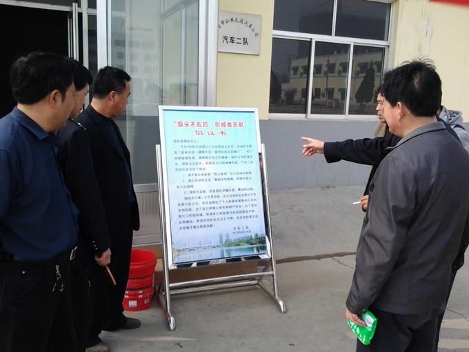 今年4月是全國第25個全國愛國衛(wèi)生月,活動的主題是“美麗中國•健康中國——摒棄亂吐亂扔陋習”。為了控制吸煙危害,保障每位員工的健康,保護公司環(huán)境衛(wèi)生,預防火災發(fā)生,積極為公司創(chuàng)城工作做貢獻。近日,市公交公司汽車二隊開展了“煙頭不亂扔,創(chuàng)城做貢獻”倡議活動。