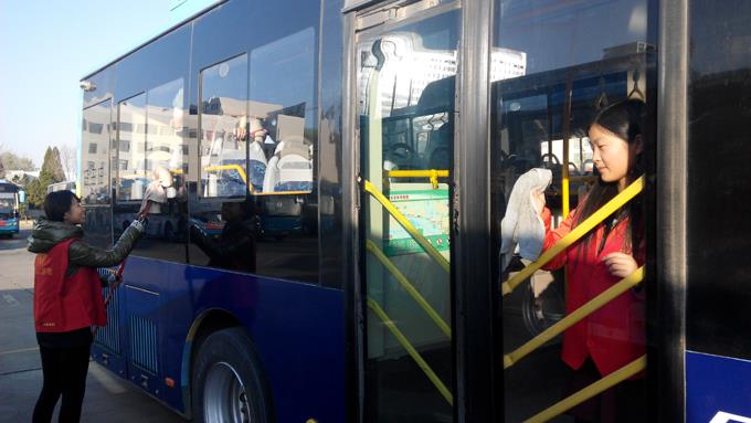 來自東營市職業學校會計學院的大學生和市公交公司汽車一隊職工共計24人,分兩個小組,一組乘坐公交車上路為特需乘客服務,幫助疏導乘客,另外一組幫助駕駛員擦拭公交車,清掃車廂衛生。大家工作起來井然有序,有條不紊,尤其活躍在車廂為乘客服務的志愿者們,更是得到了乘客的一致好評,成為公交車上一道靚麗的風景。