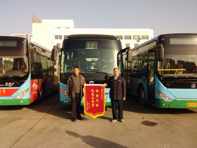 11月8日上午,北京百利達防腐工程有限公司的黃先生拿著一面寫有“拾金不昧,傳遞正能量”的錦旗來到市公交公司汽車一隊,感謝171路駕駛員王玉斌師傅拾金不昧的高尚品德。據車隊了解得知,11月6日晚22:10時左右,黃先生乘坐王玉斌師傅駕駛的171路公交車,下車到工地附近旅館后發現錢包不見了,錢包內有2400元現金、身份證和駕駛證等物品。第二天一早,黃先生抱著試試看的想法來到市公交公司汽車一隊駐地,詢問得知駕駛員王玉斌師傅在停車后檢查車輛時,發現了一個裝有2400元現金、身份證和駕駛證等物品的錢包。
