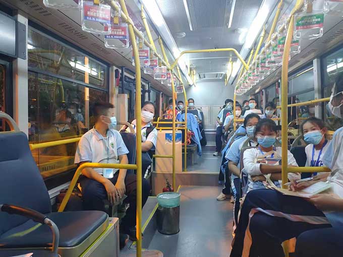 為平穩有序開學保駕護航,精準對接學生家長需求,努力營造家長放心、學生滿意、社會認可的安全出行環境,東營公交依托東營智慧公交系統推出“定制公交”助學服務,助學服務自上線以來,深受學生家長的喜愛。2022年8月累計收到通學服務相關需求接近萬條,東營公交快速響應,根據前期收集到的學生通學出行需求,統籌整合公交運力資源,規劃開通30條助學“定制公交”線路,71條“專線公交”,每日安排運行262個班次,點對點服務學生出行,助力學生直達校園,全力保障學生出行。同時為更好地守護學子出行,公交駕駛員發車前均會進行酒測和體溫檢測,對運營車輛進行全面檢查,車輛返回場站進行消毒清理,在全面做好各項防疫措施的同時,確保學生們的乘車安全。