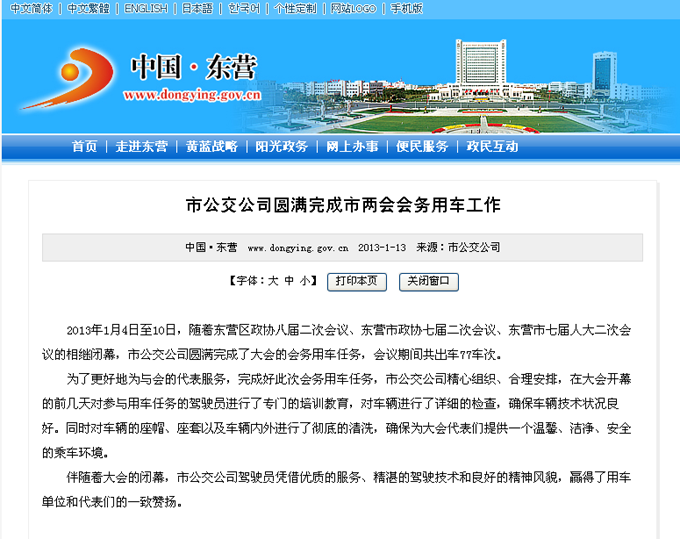2013年1月13日東營市政府網站報道
