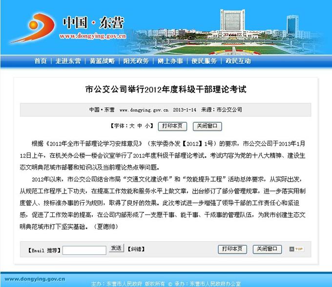 2013年1月13日東營市政府網站報道